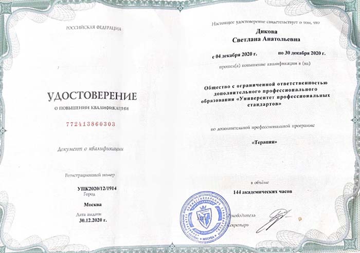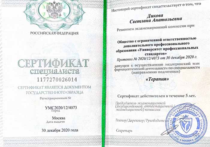 Светлана Дикова - врач-терапевт медицинской клиники «Гармония» {city_p}